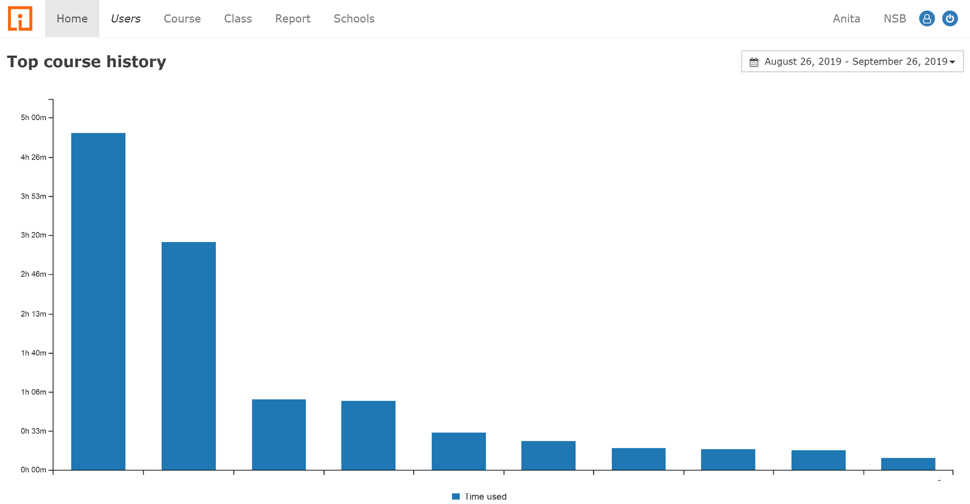 Provides a clue to activity throughout the "school". See also the "Hours spent on courses" report for a detailed overview of the activity.